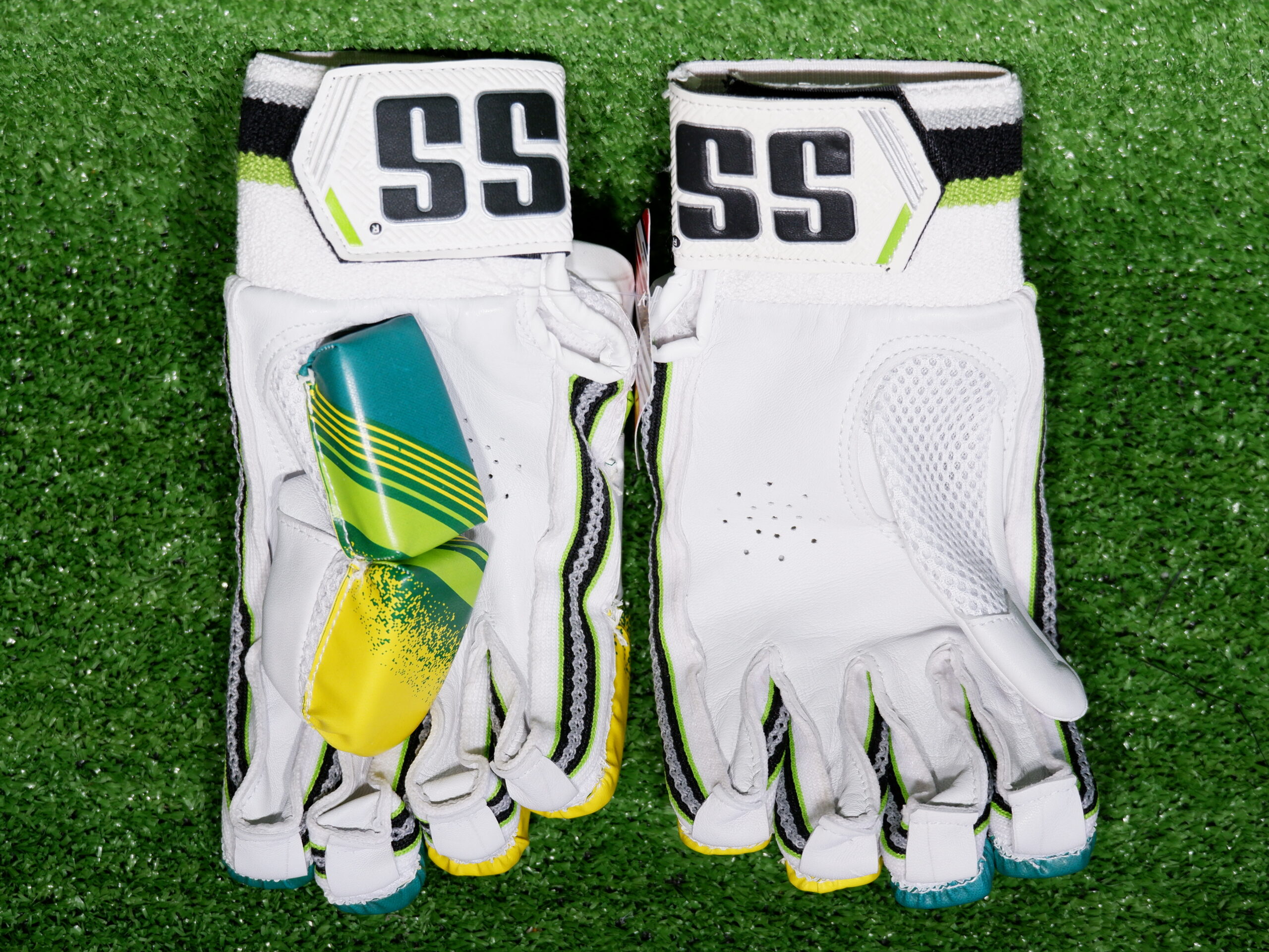 • SS cricket batting gloves uses mesh gusset for air ventilation.